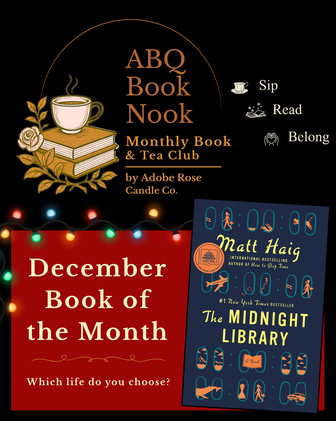 Welcome to ABQ Book Nook by Adobe Rose Candle Co., a monthly book and tea club where words and flavors meet.