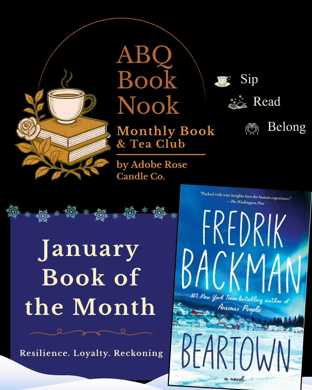 Welcome to ABQ Book Nook by Adobe Rose Candle Co., a monthly book and tea club where words, flavors, and friends meet.