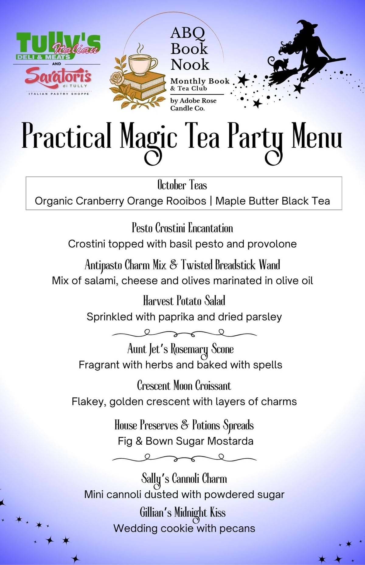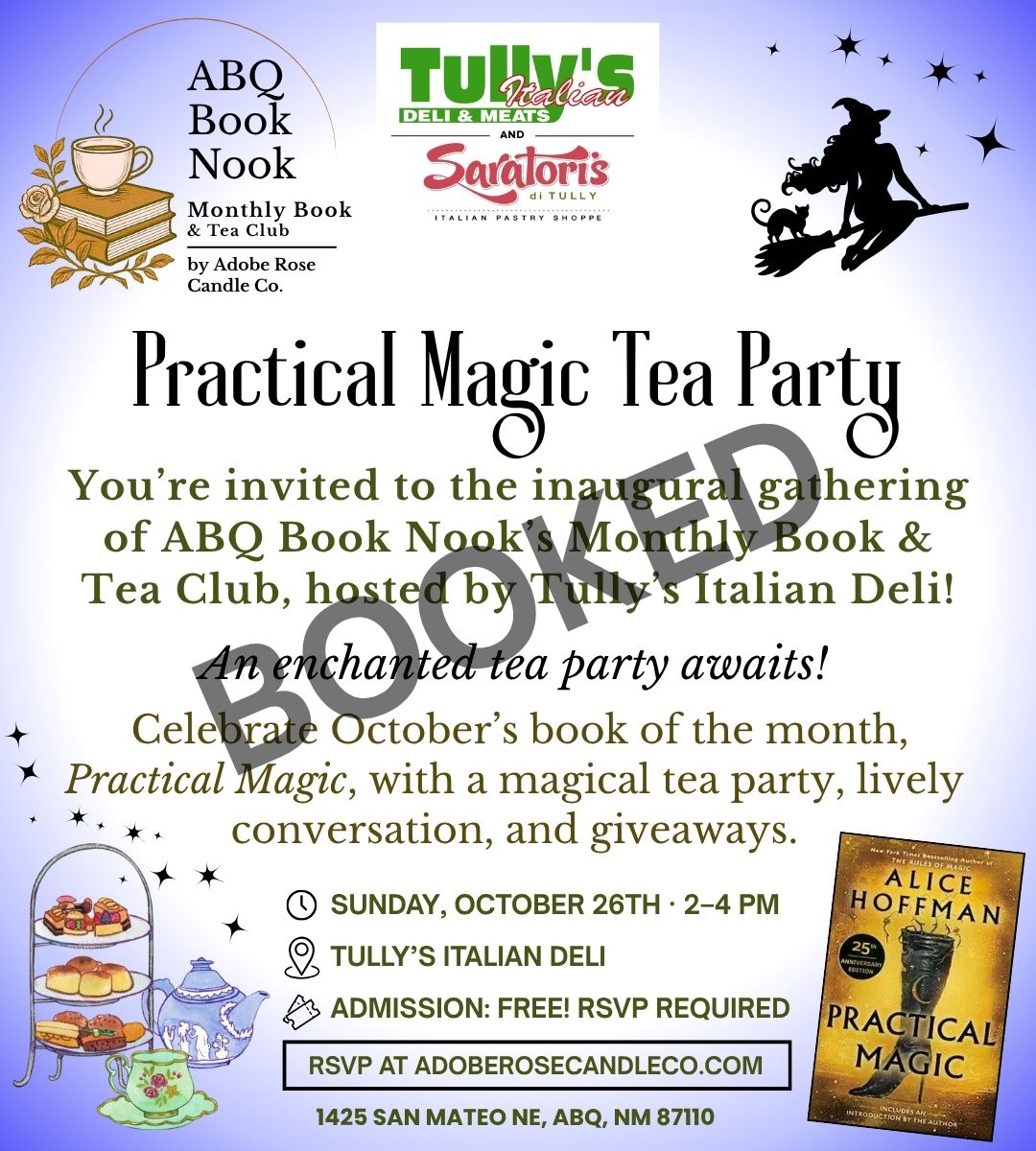 We're celebrating our inaugural book and tea meet up with a Practical Magic Tea Party! See below for details and to RSVP to this fun and free event.